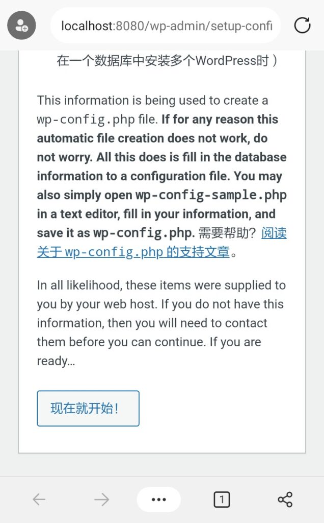 进入ksweb,开启LIJHPPTD、MySql、php服务(方法与之前一样)。在主页点击lijhpptd下的“主机0”(默认的)旁边的链接,在浏览器中打开。之后会自动来到一下界面,我们点击“现在就开始!”。
