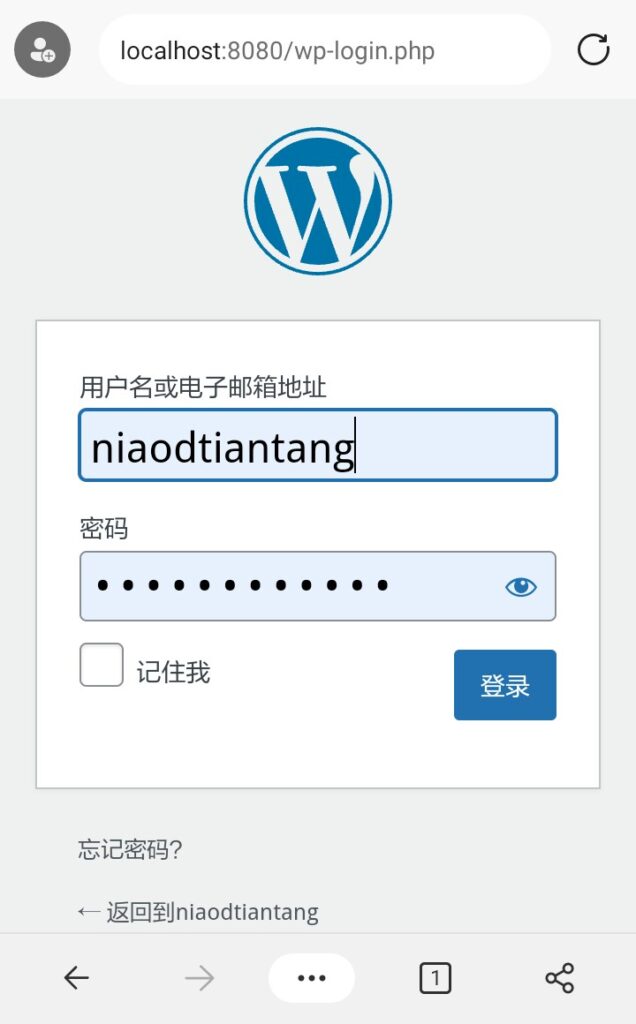 安装完成后会提示你来到登录界面(你的站点URL/wp_login.php)。输入管理员电子邮件(用户名)和刚刚设置的密码即可登录。